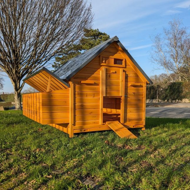 El Gallinero Titán con techo de chapa es el refugio ideal para alojar hasta 15 gallinas ponedoras o 18 gallinas ornamentales. Diseñado con cuidado a partir de madera maciza tratada, ofrece una solución robusta, cómoda y segura para tus aves.