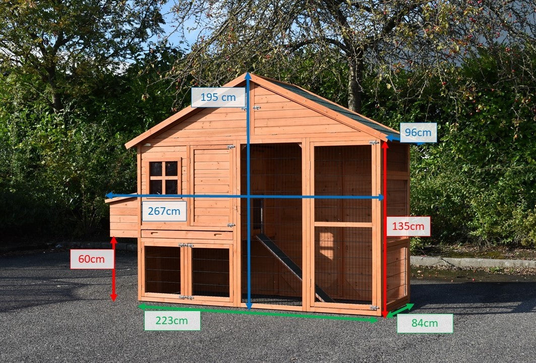 Dimensiones exteriores con techo y nidal (LxPxH): 267 x 96 x 195 cm